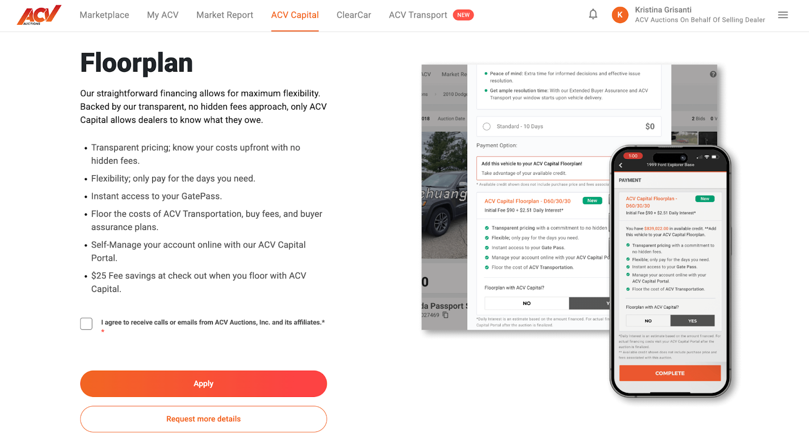 ACV Capital provides flexible financing solutions designed to help dealerships acquire inventory, expand their purchasing power, and grow their business. The application for these powerful financial tools is straightforward, accessible directly within your ACV Marketplace account, allowing you to quickly explore tailored options and seize new opportunities for success.